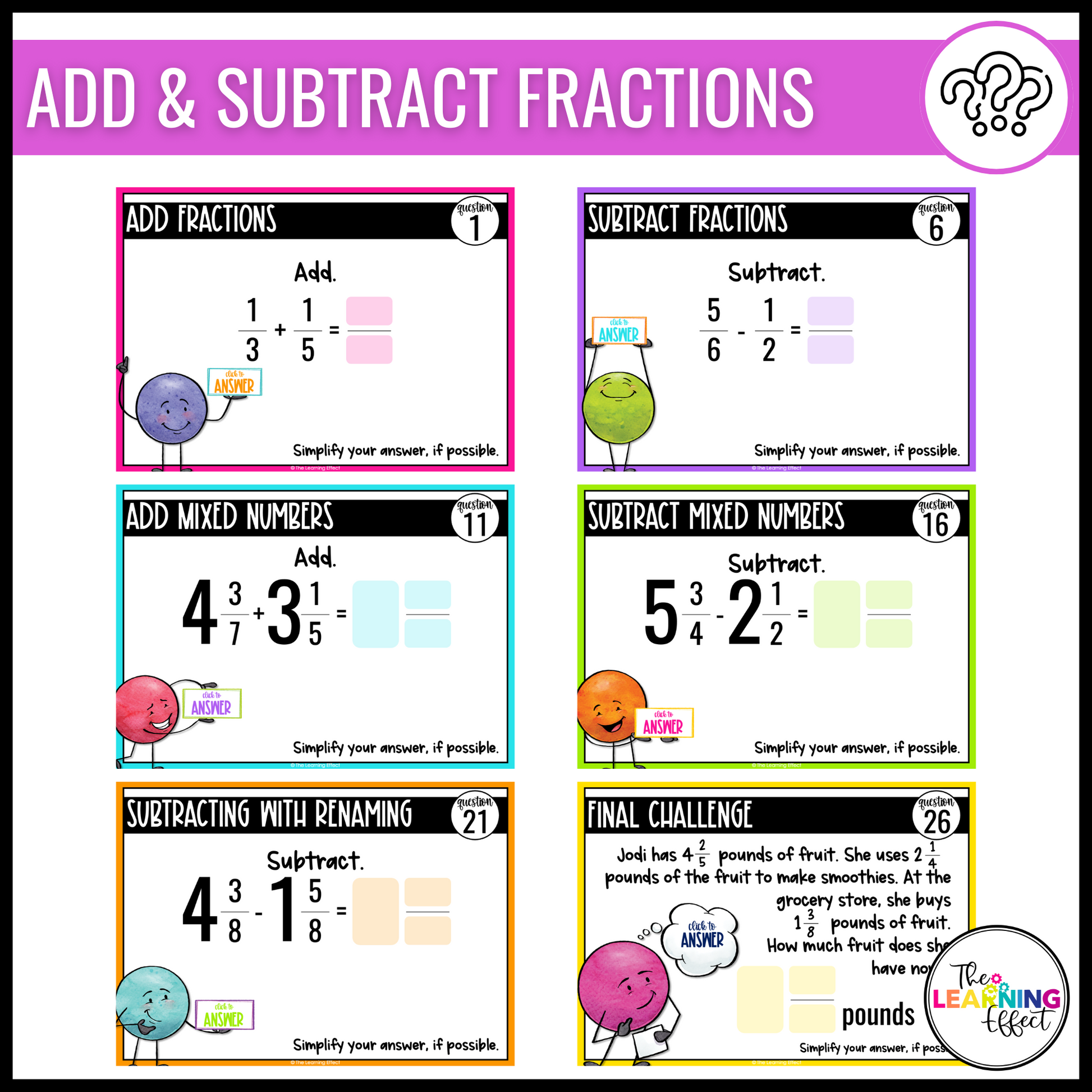 These Google Slides activities are perfect for reinforcing key fraction skills through independent work, small group practice, whole-class review, or test prep. With three focused sets, you can easily differentiate or assign by standard for a meaningful review of 5th grade math.