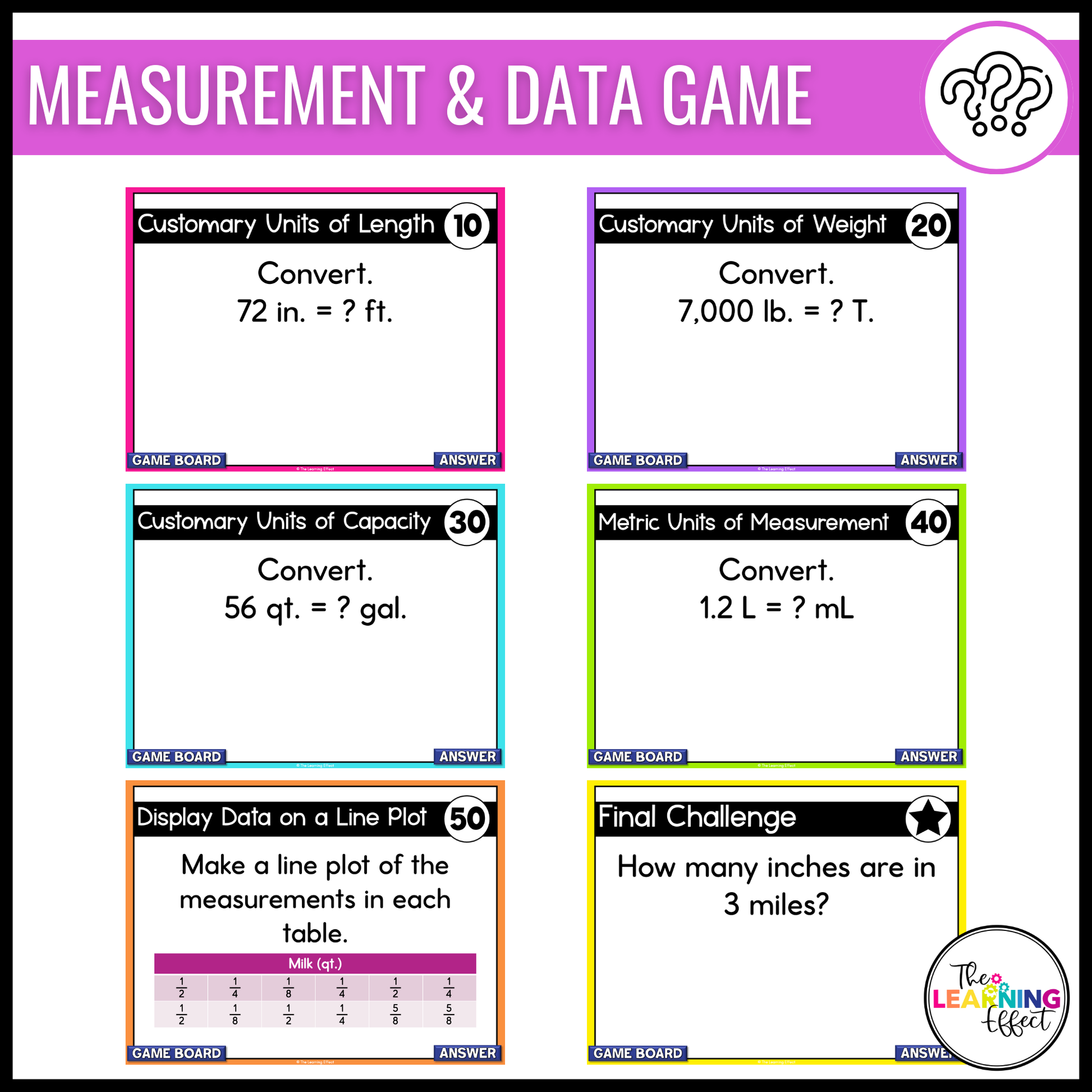 Review 5th grade geometry, measurement, and data standards in a fun and interactive way that involves your whole class. These engaging game shows play like Jeopardy® and cover 5th grade math skills. Perfect for an end of year or end of unit review.