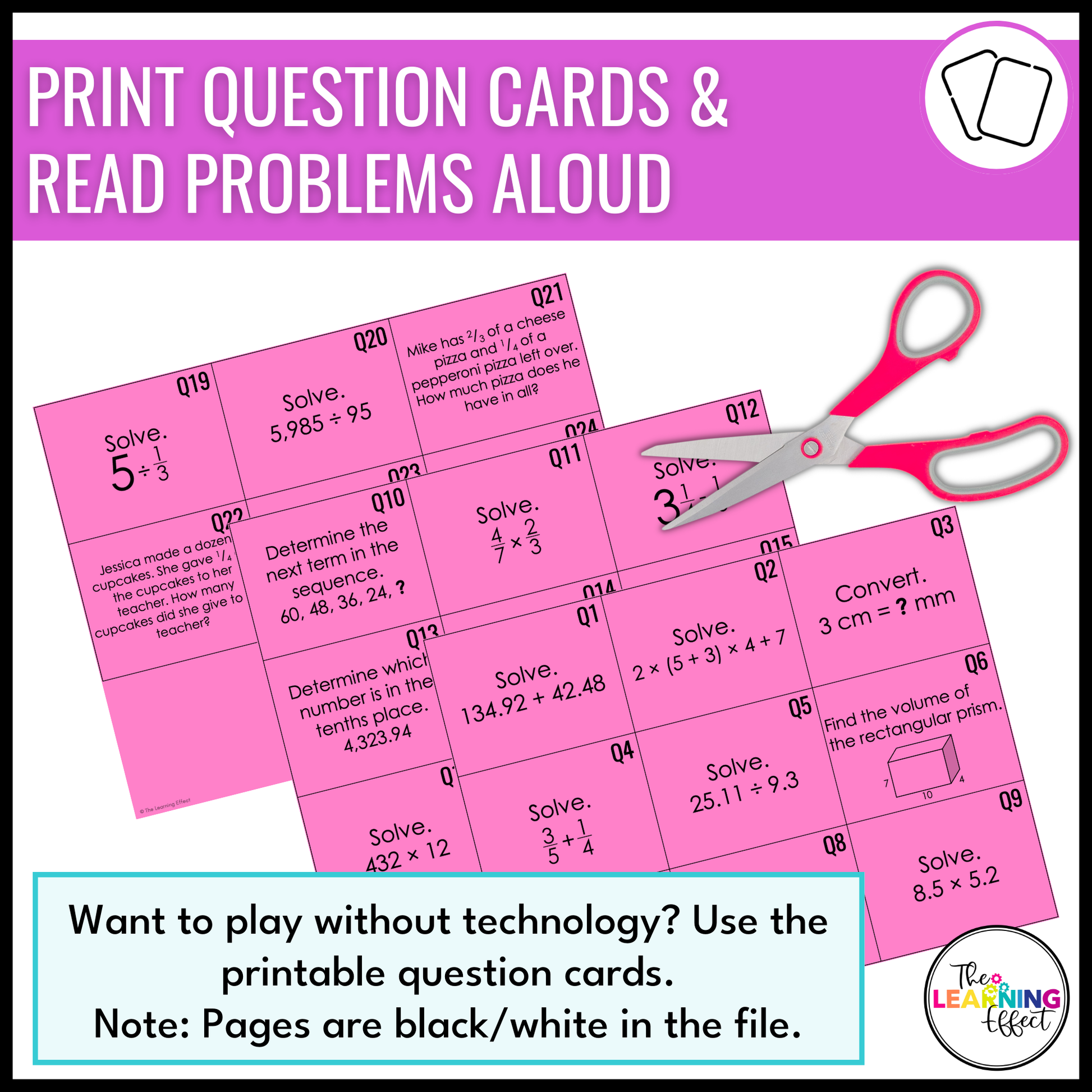 Perfect for 5th grade end of year review or 6th grade beginning of year review. This bingo activity can be played whole-class, in math centers, or small groups.