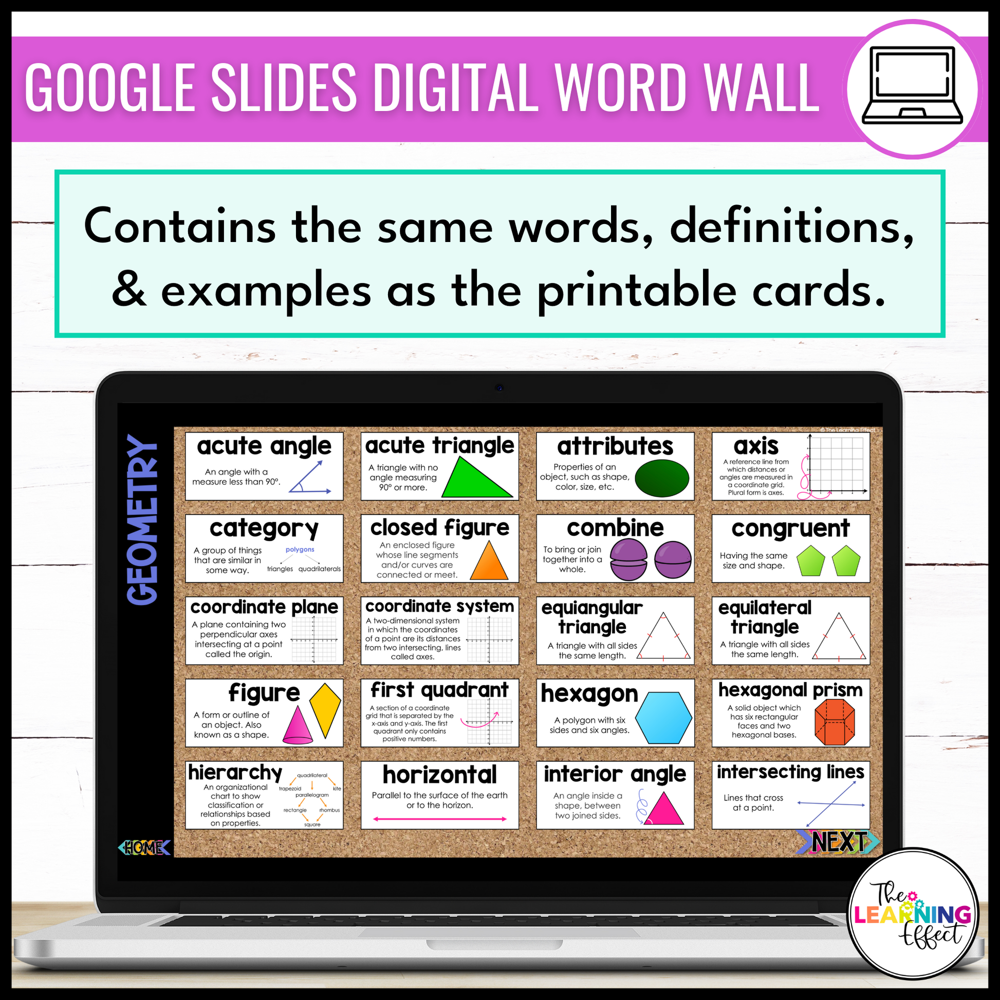 - Google Slides file - digital math word wall with clickable navigation and moveable cards for customization by the teacher