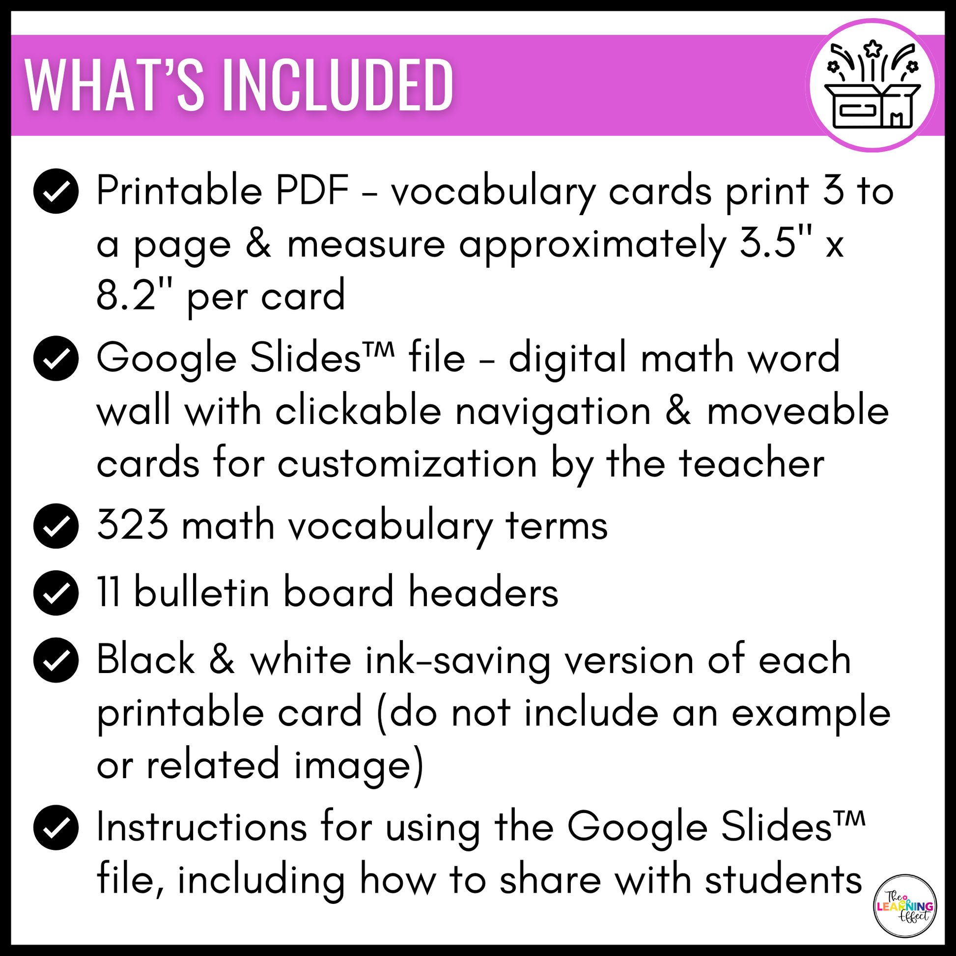 - 323 vocabulary terms (see the images above for a list of all of the words that are included)