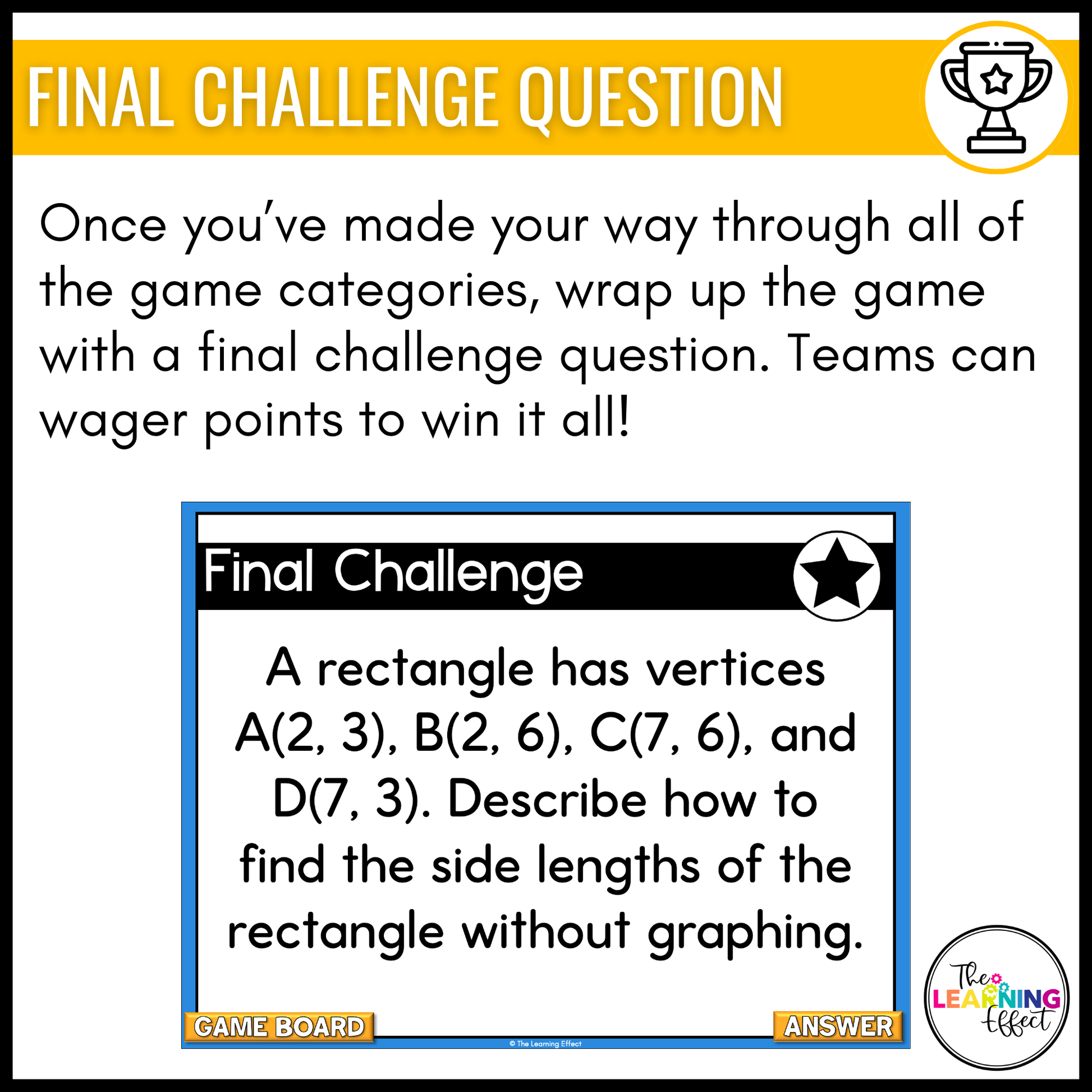 - Student-Approved: Students love the game format and frequently ask to play again