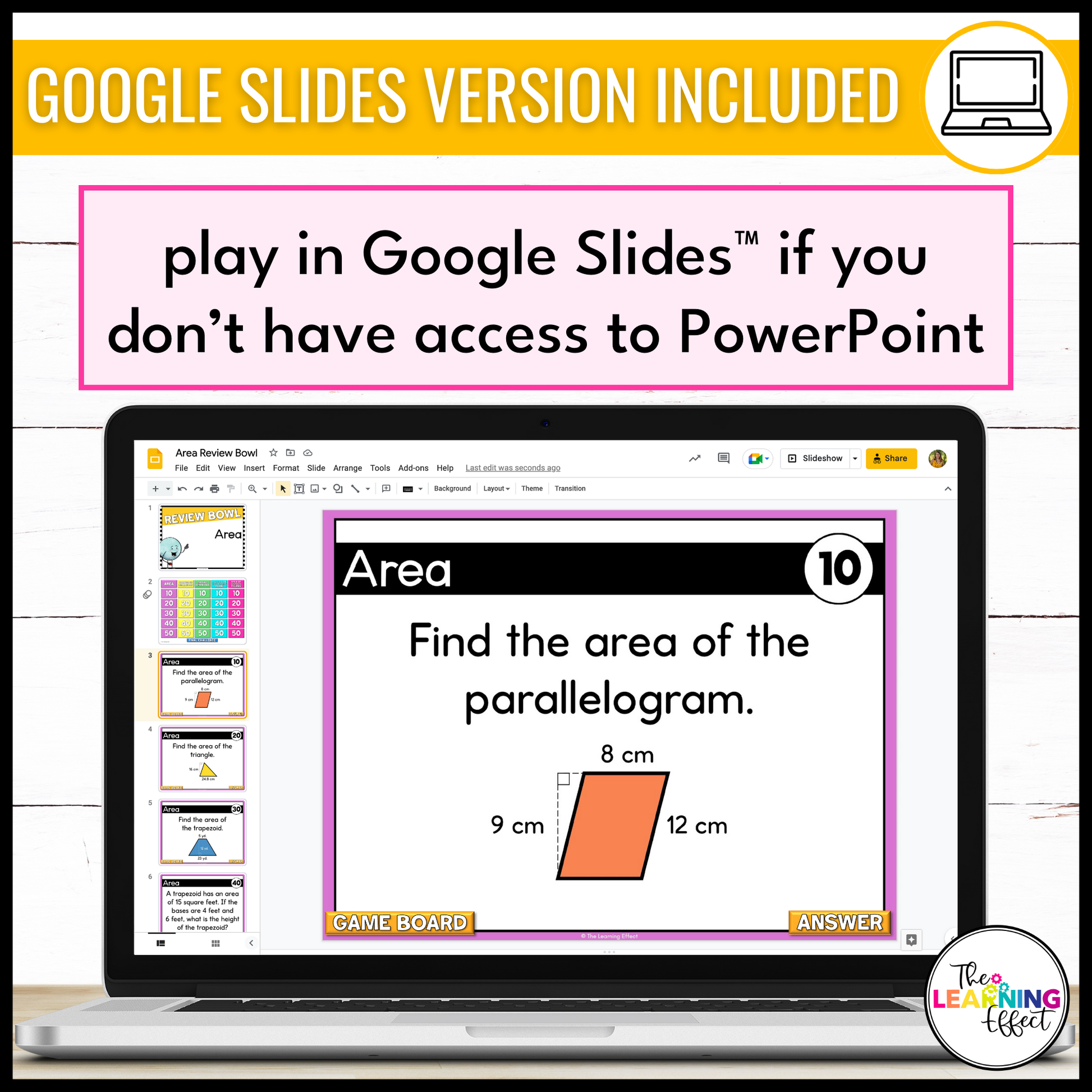 - Google Slides: Access the Google Slides version using the link provided in the included PDF. You’ll need a (free) Google account to use this file.