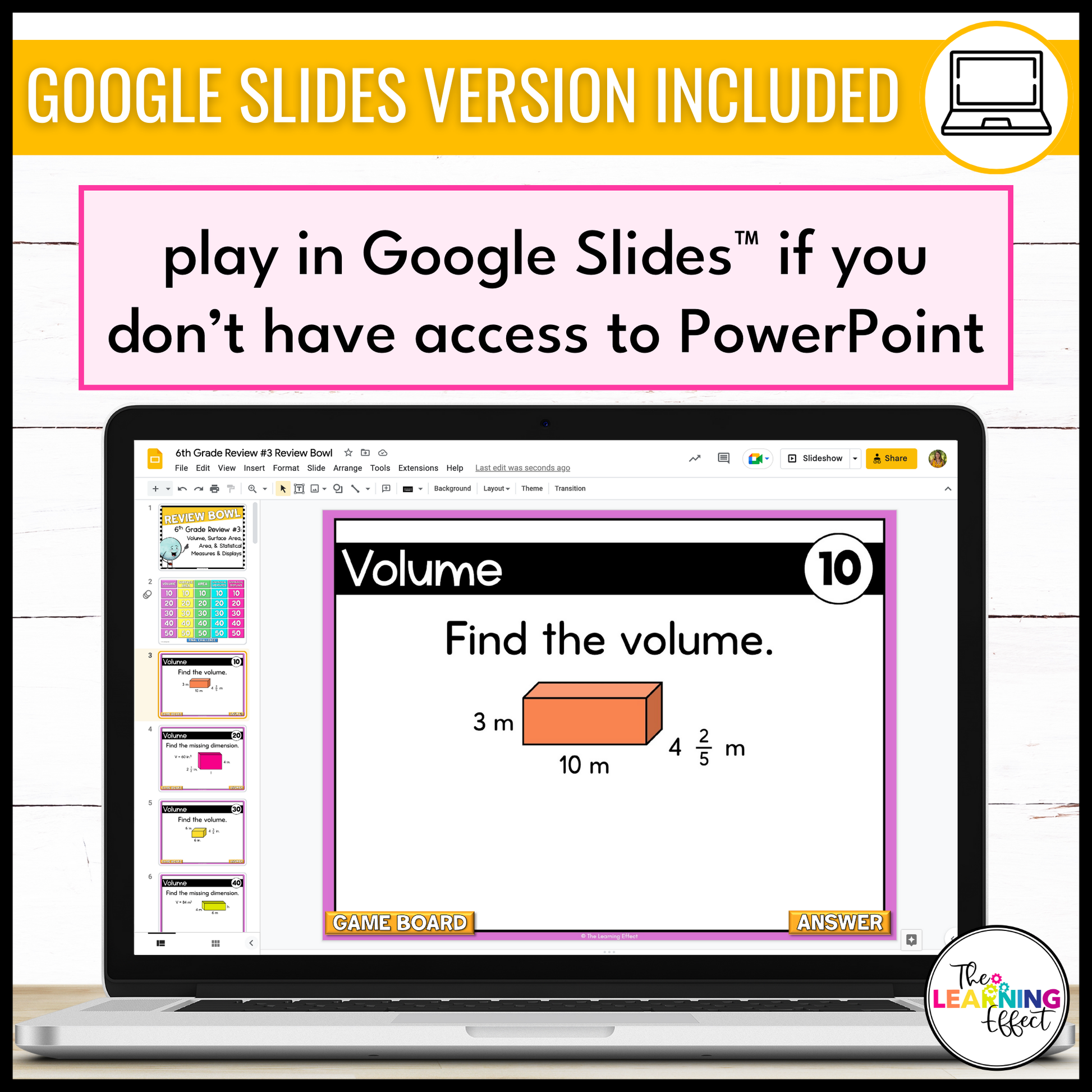 Make reviewing 6th grade math standards fun and interactive with this Jeopardy-style game. This game covers math skills like volume, surface area, area, statistical measures, and statistical displays, making it a great choice for end-of-year review for 6th grade or beginning of year review for 7th grade.
