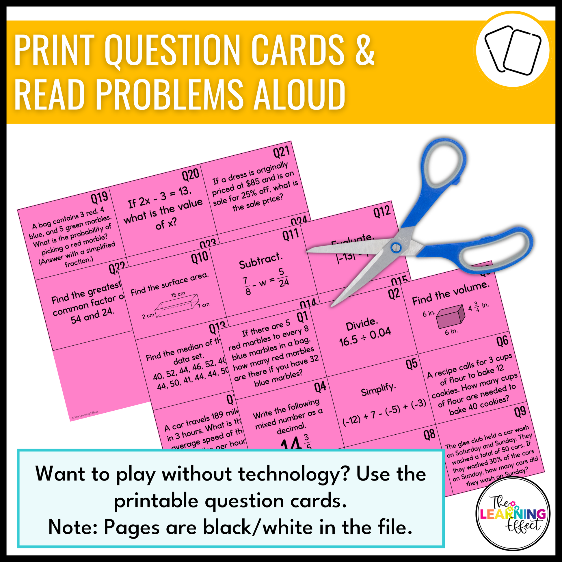 Perfect for 6th grade end of year review or 7th grade beginning of year review. This bingo activity can be played whole-class, in math centers, or small groups.
