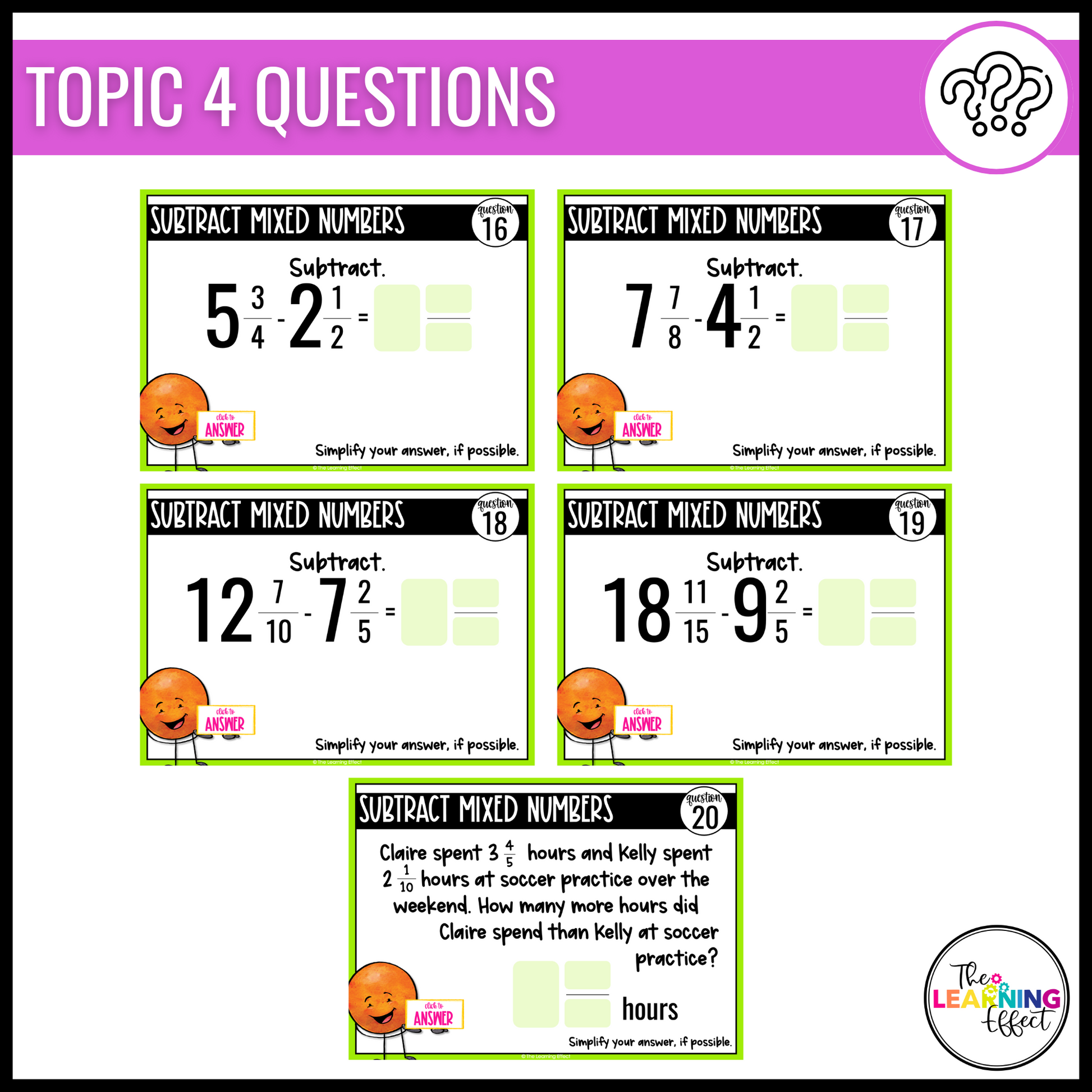 Make practicing Adding and Subtracting Fractions engaging and stress-free with these Google Slides task cards. This activity covers 5th grade math skills like adding fractions, subtracting fractions, adding mixed numbers, subtracting mixed numbers, and subtracting with regrouping, making it perfect for independent practice, small group work, whole-class review, or test prep.