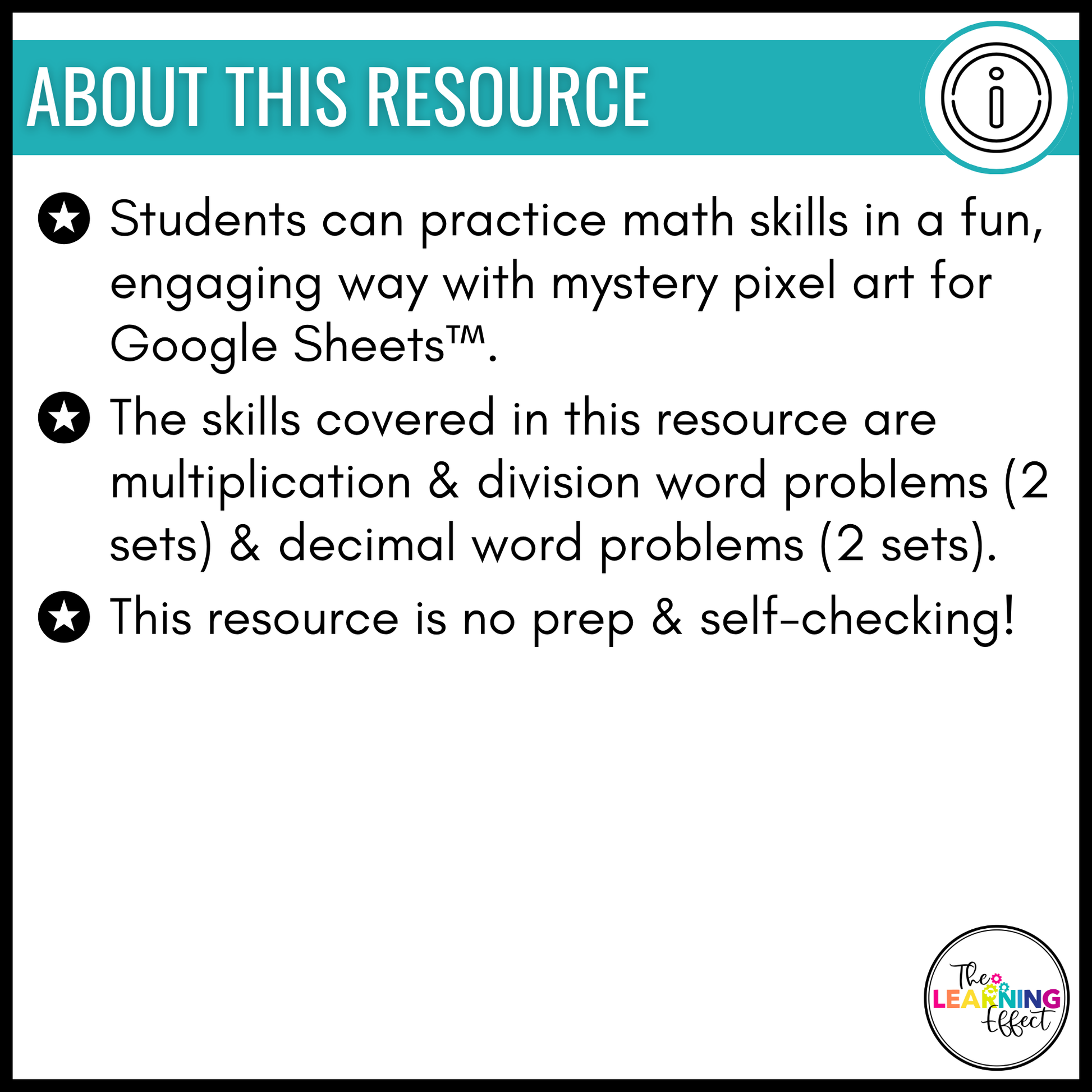 - A Google Sheets file where students input their answers to reveal a mystery pixel picture.