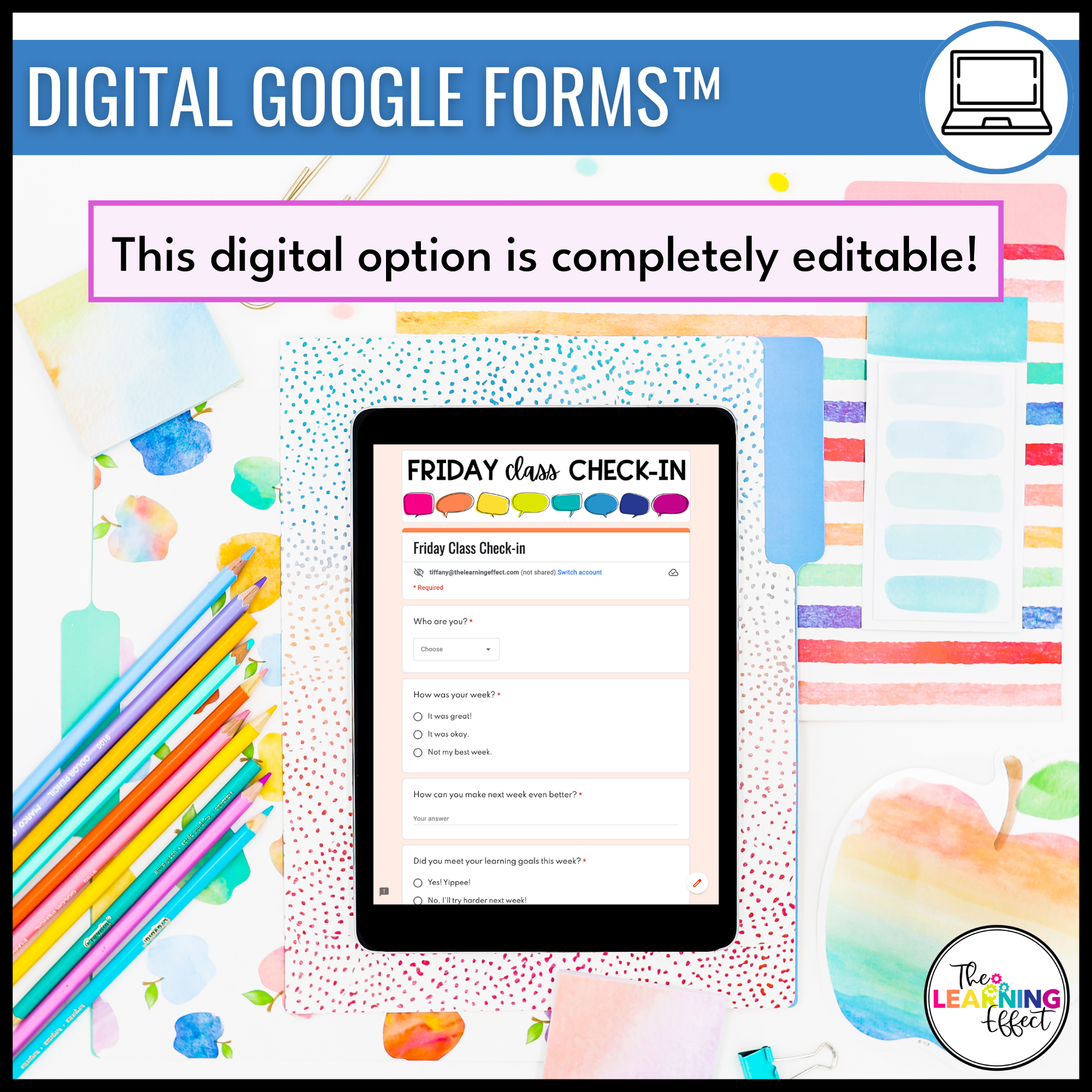 - Google Forms: To access the Google Forms option, you need to have a (free) Google account. Once you purchase this resource, you will receive a PDF with a link to access the digital resource. The links will prompt you to make a copy of the file, which will add it to your Google Drive.