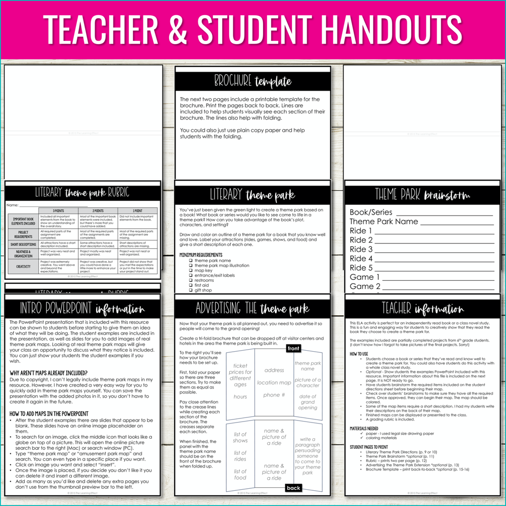Are you looking for a creative and easy book project for upper elementary students? Have students create their own literary theme park based on a book they've read or a class novel. This engaging reading project is sure to be enjoyed by students!