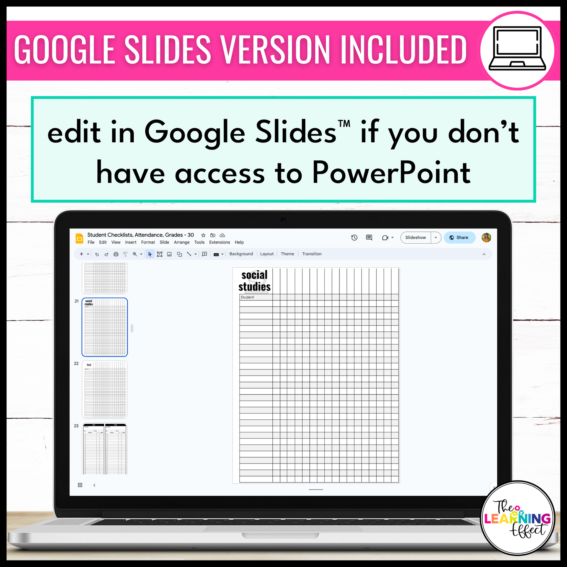 Easily create student checklists, assignment trackers, attendance sheets, and more with these completely editable printables. Type your class list into a sheet and copy and paste the list into the others you'd like to use. It's that simple! A PowerPoint and Google Slides file are included so you can create your lists with your preferred software.