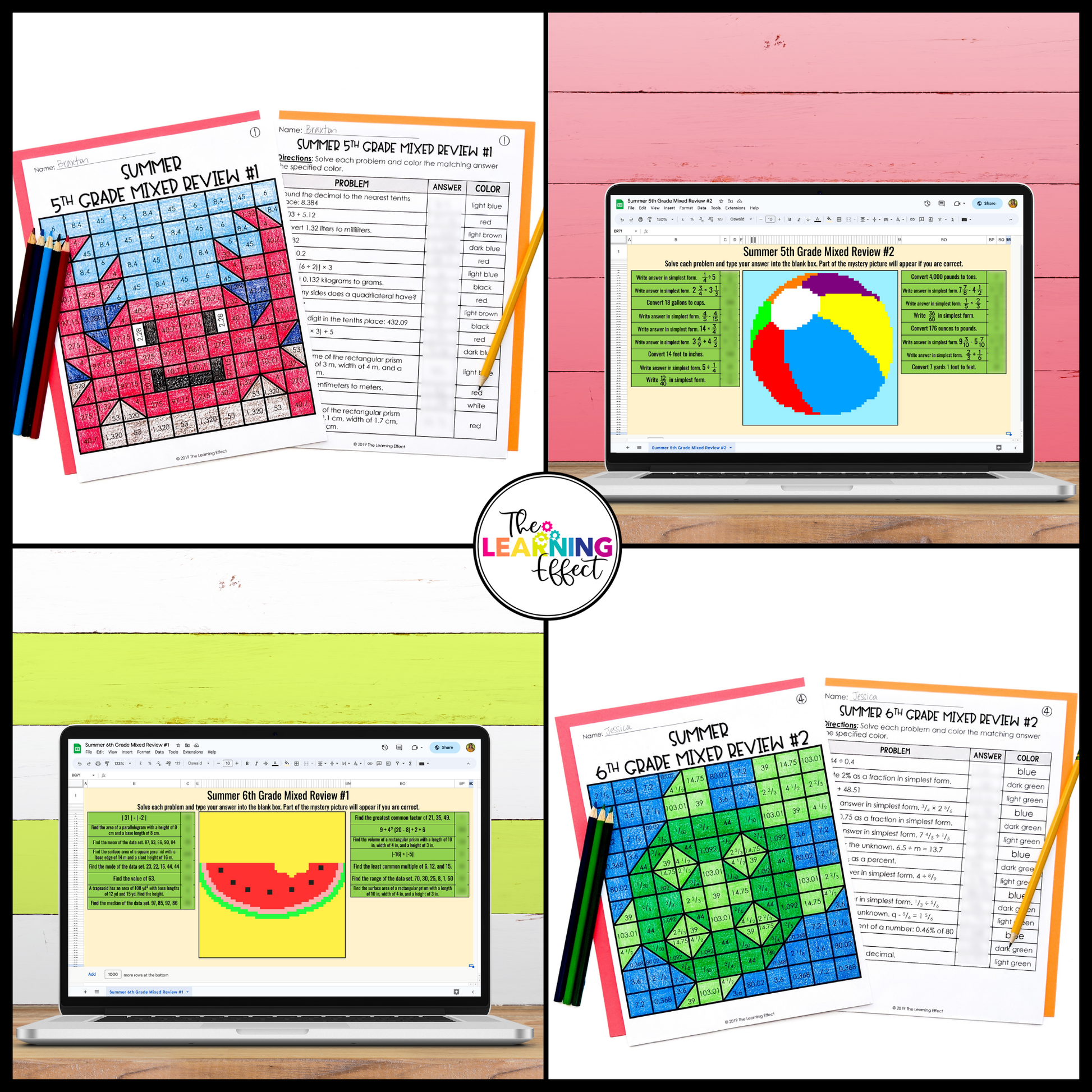 Both resources include four activities focused on 5th and 6th grade end-of-year math review: