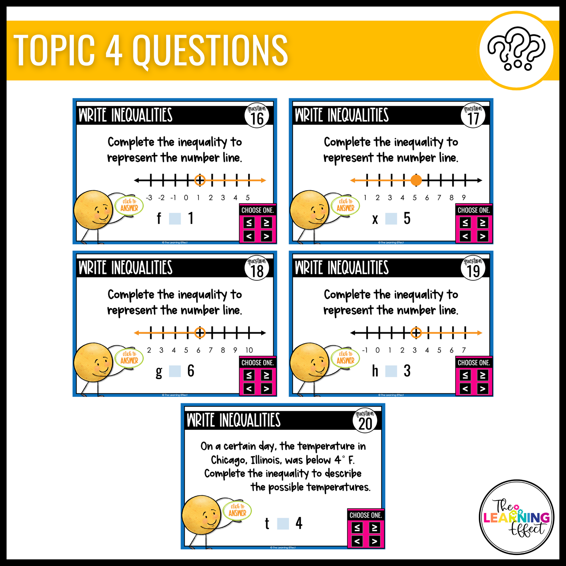 Make practicing Functions and Inequalities engaging and stress-free with these Google Slides task cards. This activity covers 6th grade math skills like function tables and rules, functions and equations, inequalities, writing and graphing inequalities, and one-step inequalities, making it perfect for independent practice, small group work, whole-class review, or test prep.