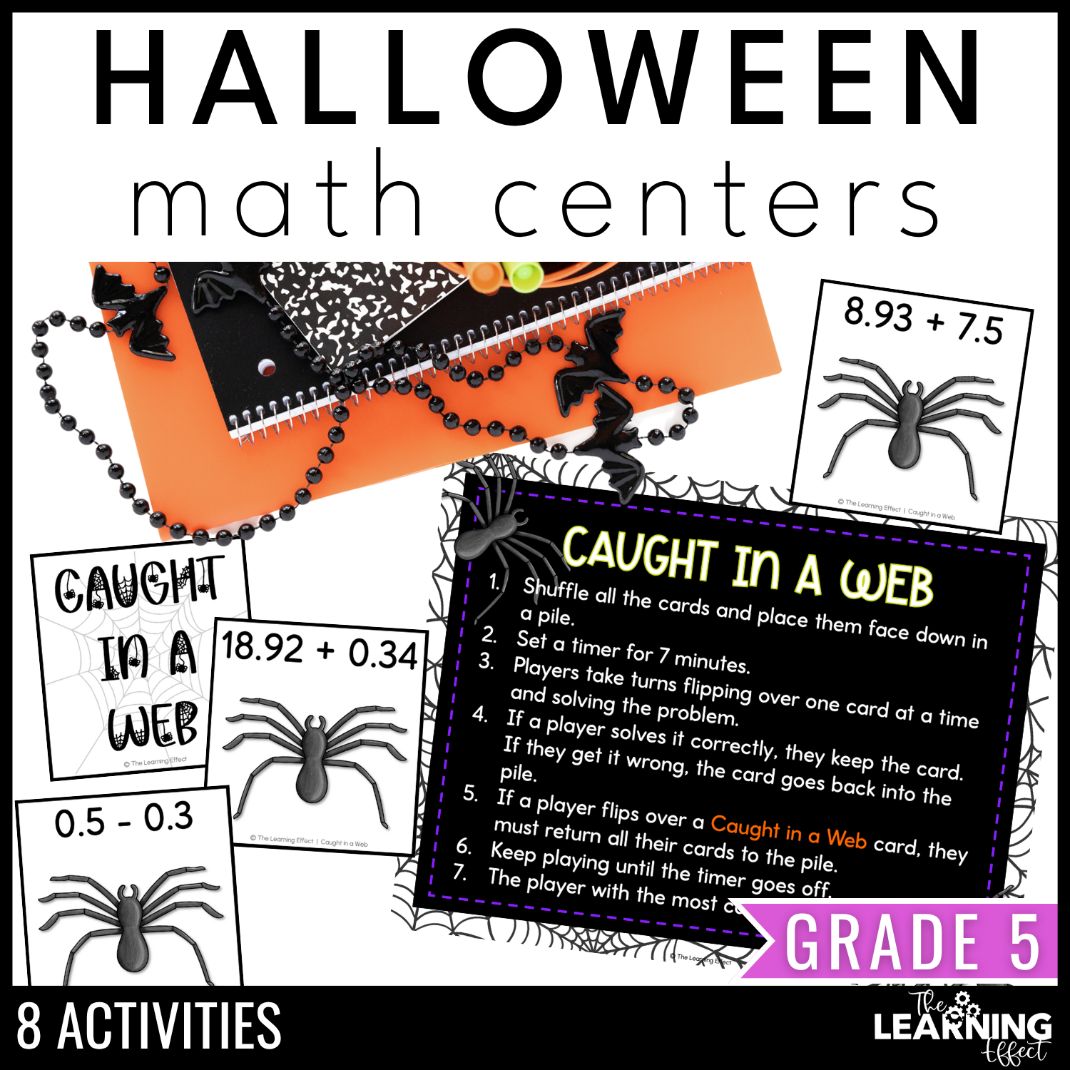 Make math practice frightfully fun with these Halloween Math Review Centers! This set includes eight interactive games and activities that review key 5th grade skills like decimal operations, place value, rounding, powers of ten, inequalities, and division - all with a festive Halloween twist.