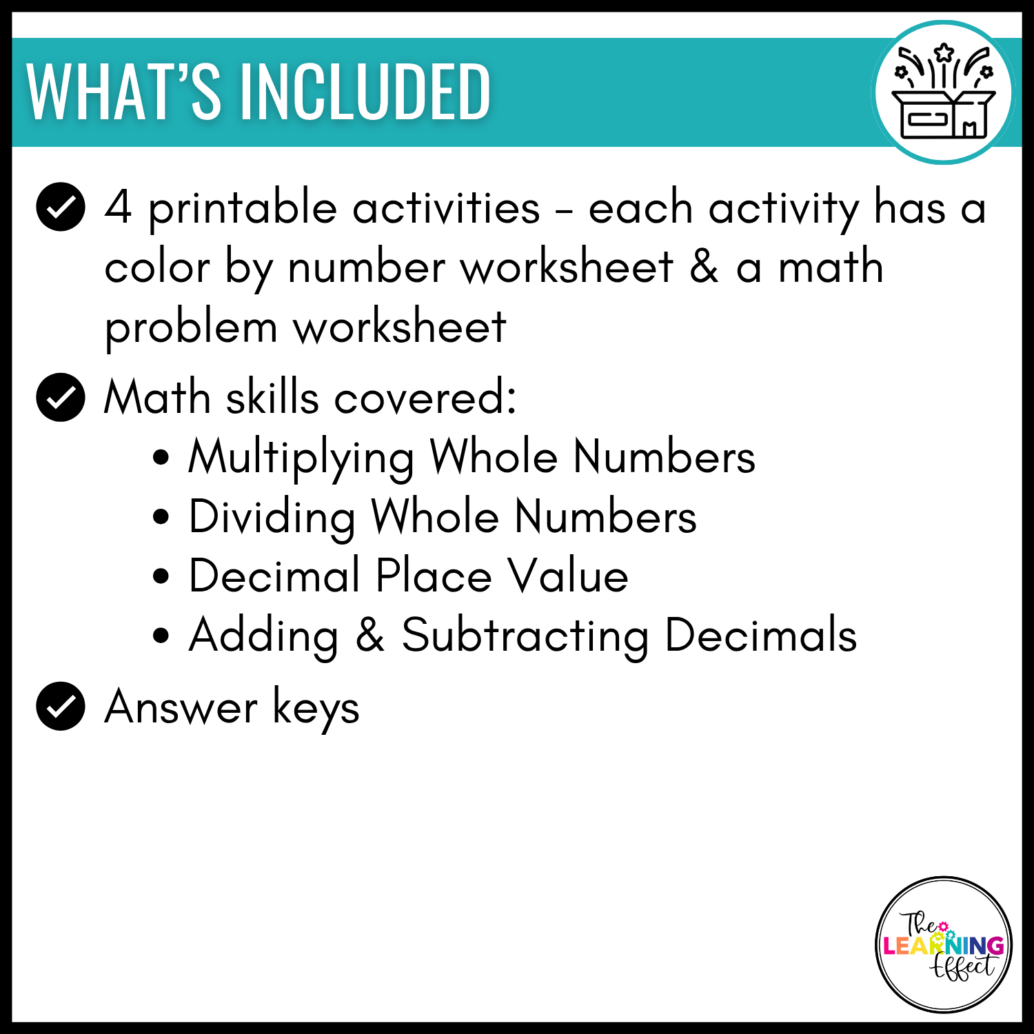 - A corresponding math problem worksheet that students solve to determine their coloring key.