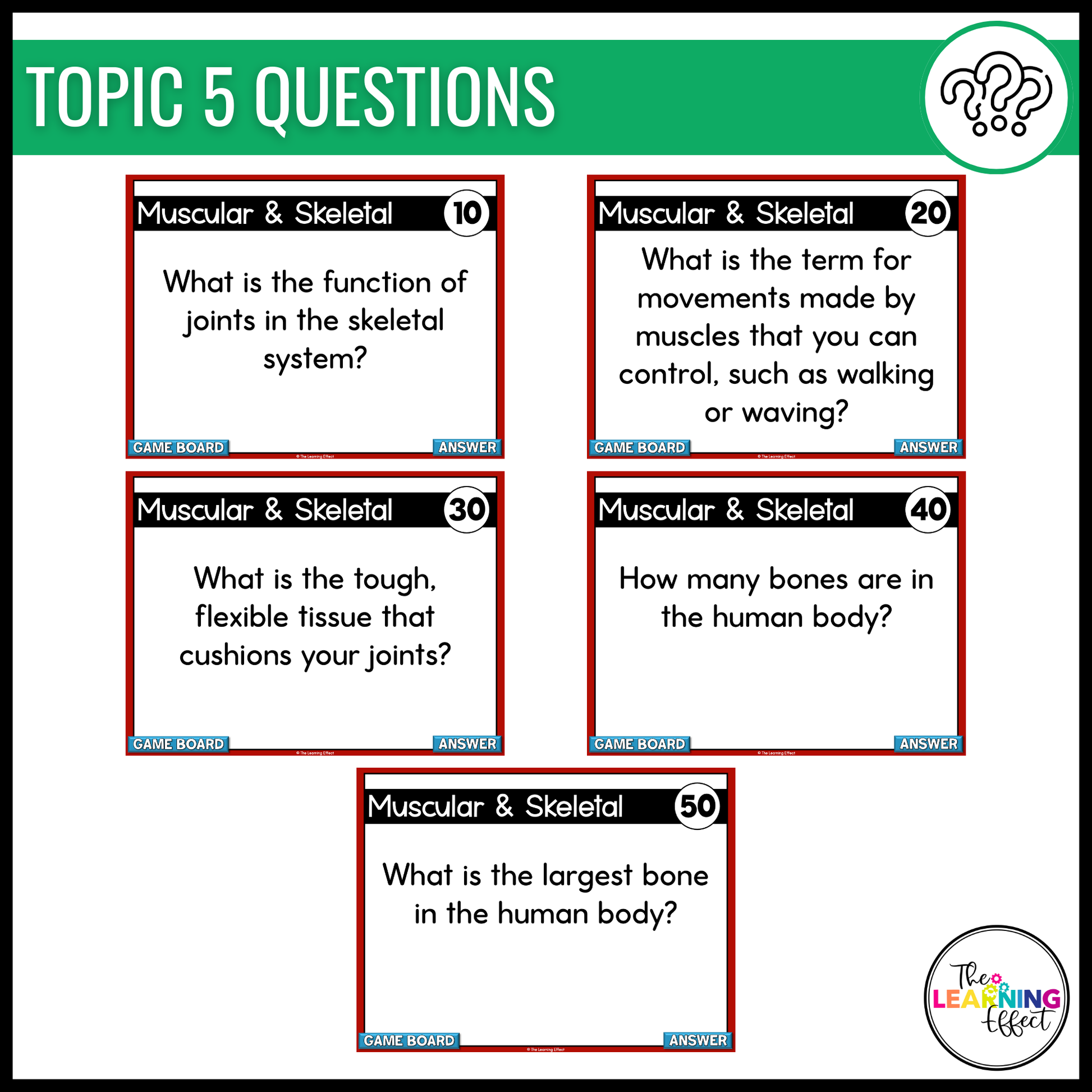HUMAN BODY SYSTEMS GAME SHOW CATEGORIES