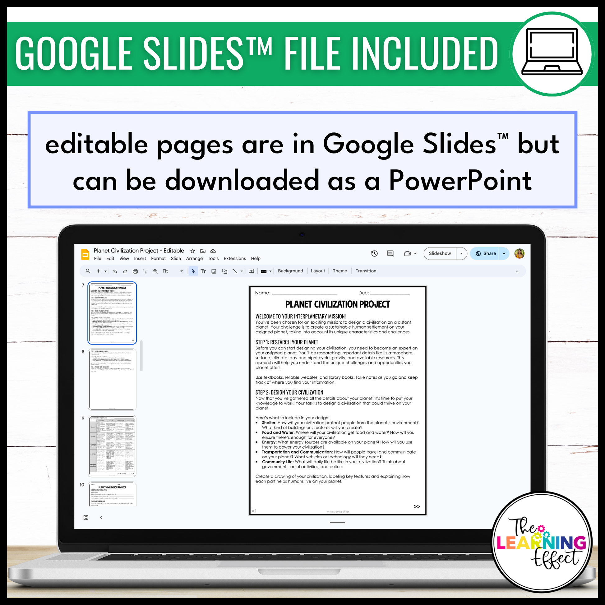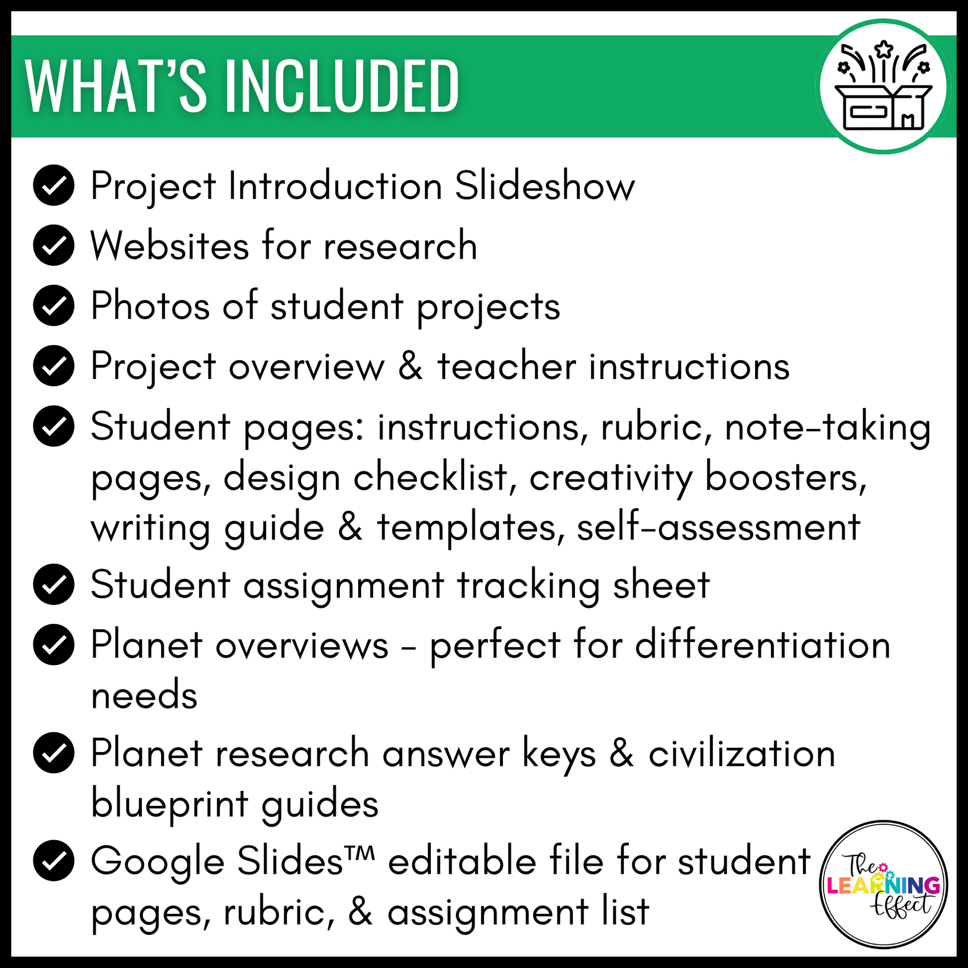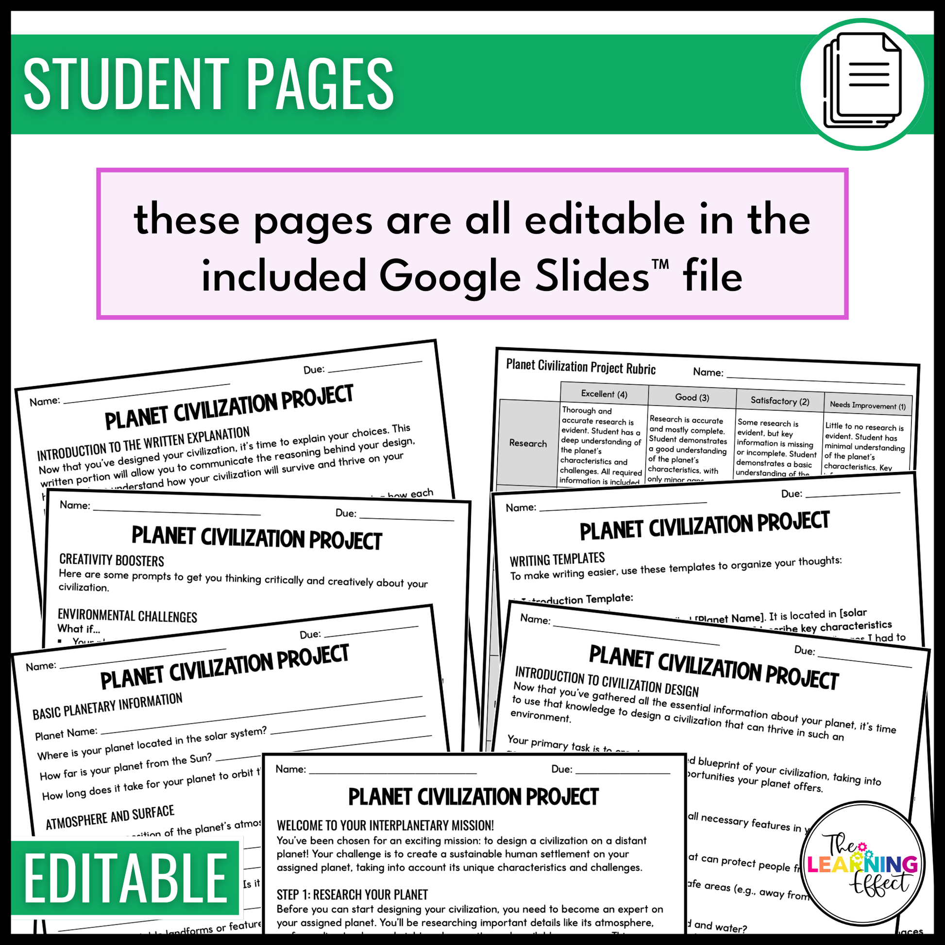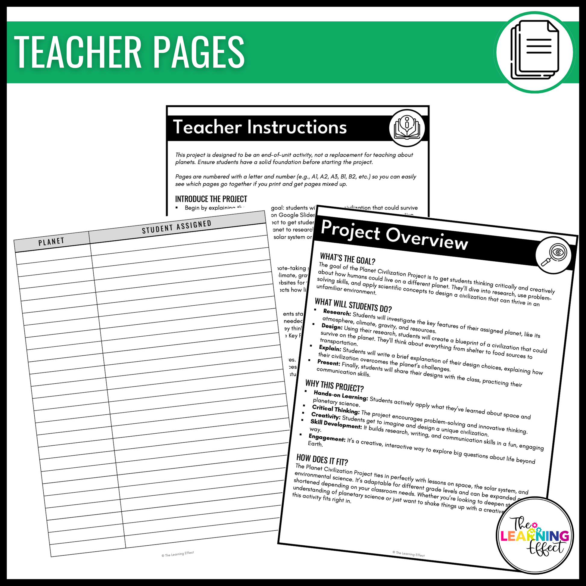 Whether you’re looking for a comprehensive end-of-unit project or an engaging activity to inspire your students, the Planet Civilization Project offers flexibility. Use the materials as provided or easily adapt them to fit the specific needs of your classroom.