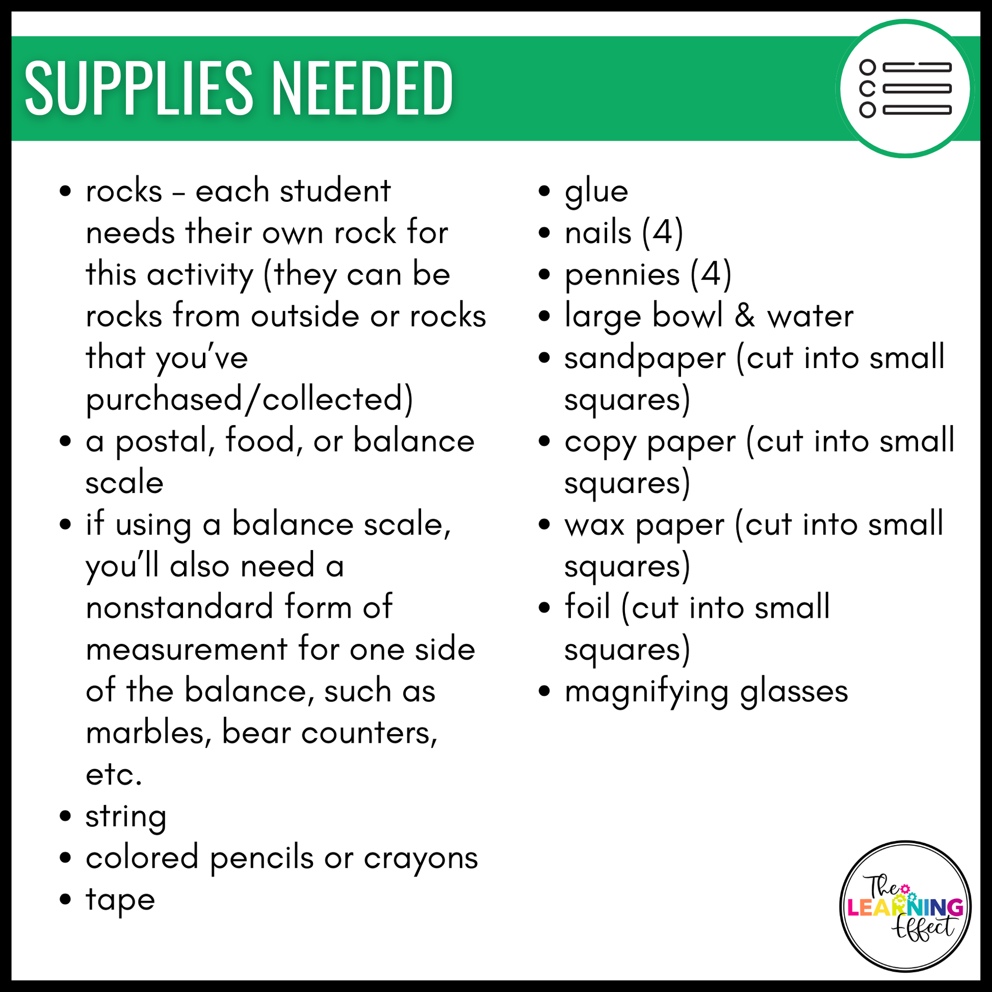 - Supplies needed list
