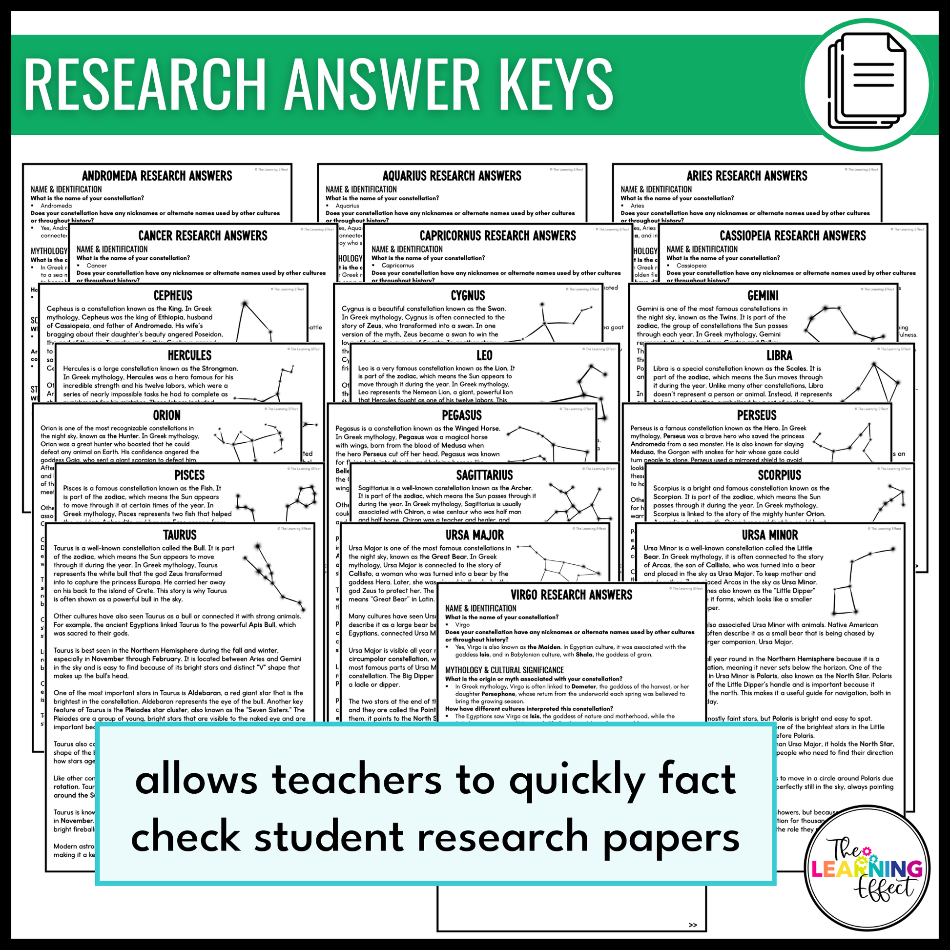 - 22 constellation research answer keys – allows teachers to quickly fact check student research papers