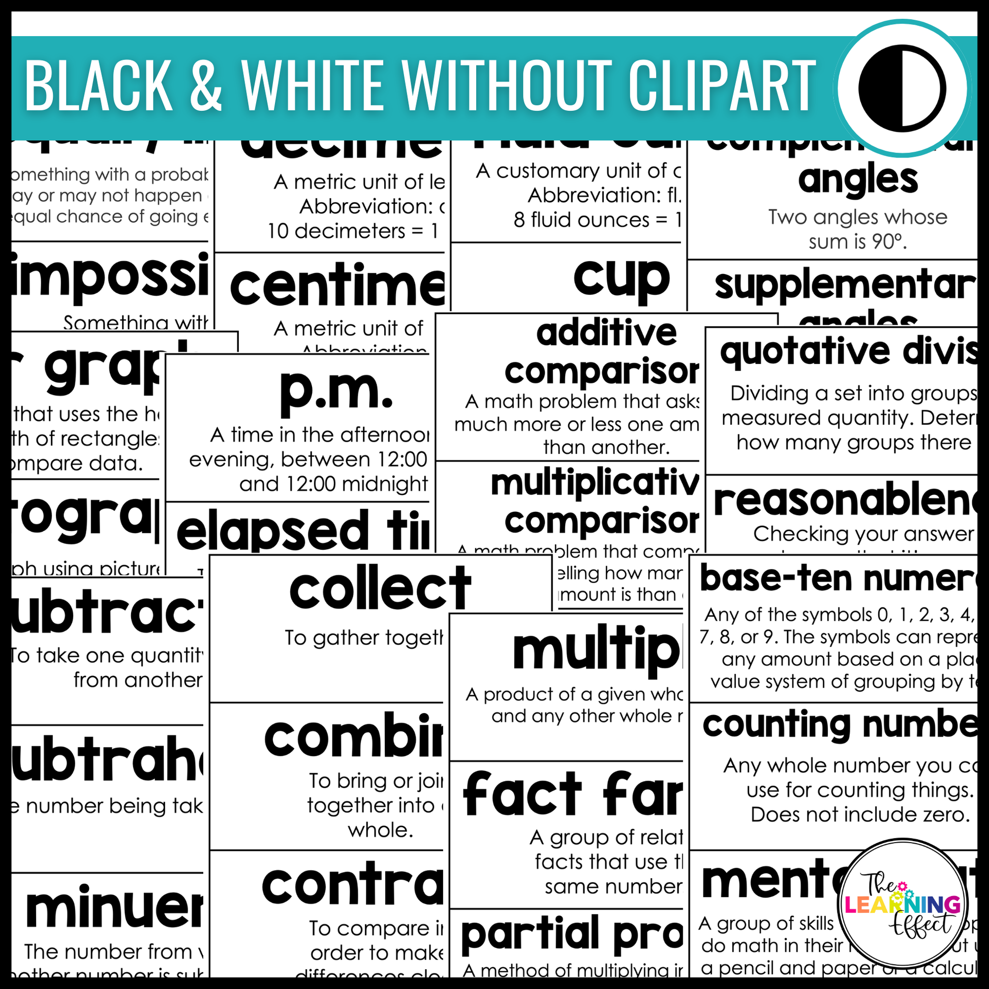 *Please note: There are many overlapping words included in the word wall sets with a total of 686 different terms. Some terms, definitions, and examples are identical across grade levels, while others have been slightly modified to better fit the grade level in which the word is included. To view all of the included terms, click here.