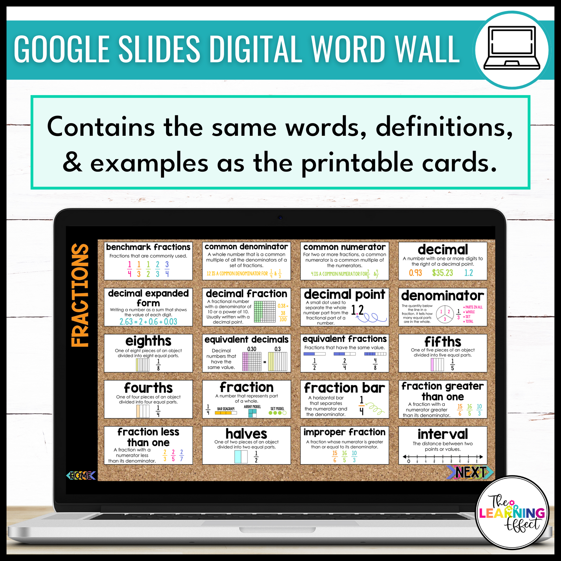 - Google Slides file - digital math word wall with clickable navigation and moveable cards for customization by the teacher