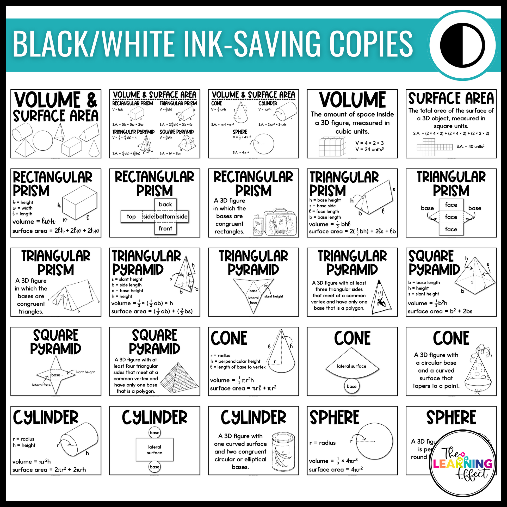 Learning the formulas for volume and surface area of 3D figures can be challenging when learning about more than one figure. These formula posters will help your students learn this math standard in no time!